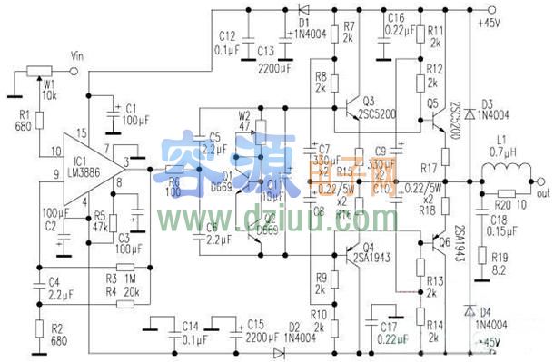 LM3886功放經(jīng)典電路圖 <<版權(quán)聲明:本文由容源電子網(wǎng)(www_dziuu_com)整理提供,部分內(nèi)容來(lái)源于網(wǎng)絡(luò),如有侵犯到你的權(quán)利請(qǐng)與我們聯(lián)系更正。》
