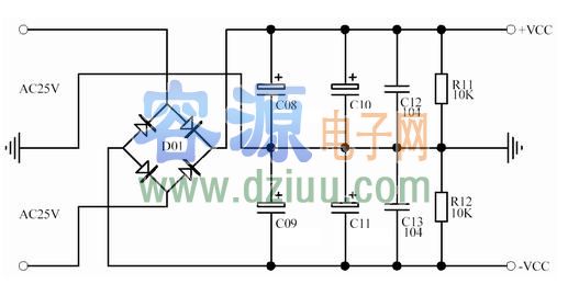 調試:本功放板調試特別簡單,電路板焊好電子元件后,要仔細檢查電路板有無焊錯的地方,特別要注意有極性的電子零件,如電解電容,橋式整流堆,一旦焊反即有燒毀元器件之險,請特別注意。接上變壓器,放大器的輸出端先不接揚聲器,而是接萬用電表,最好是數顯的,萬用表置于DC*2V檔。 <<版權聲明:本文由容源電子網(www_dziuu_com)整理提供,部分內容來源于網絡,如有侵犯到你的權利請與我們聯系更正。》