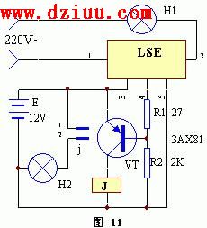該裝置的電路工作原理見圖11。停電是經(jīng)常性的事情,但有的場合則不允許停電(如正在進行手術(shù)等)。用LSE設(shè)計的電路簡單,實現(xiàn)全自動化。 <<版權(quán)聲明:本文由容源電子網(wǎng)(www_dziuu_com)整理提供,部分內(nèi)容來源于網(wǎng)絡(luò),如有侵犯到你的權(quán)利請與我們聯(lián)系更正。》