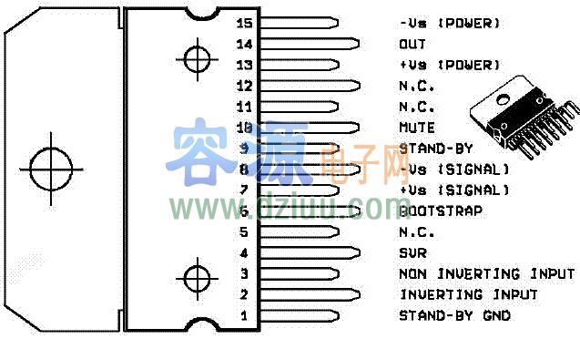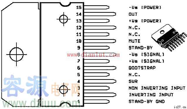 部分);⑨腳為待機(jī)腳;⑩腳為靜音腳;⒀腳為+Vs(末級(jí));⒁腳為輸出端;⒂腳為-Vs(末級(jí))。 <<版權(quán)聲明:本文由容源電子網(wǎng)(www_dziuu_com)整理提供,部分內(nèi)容來源于網(wǎng)絡(luò),如有侵犯到你的權(quán)利請(qǐng)與我們聯(lián)系更正!
