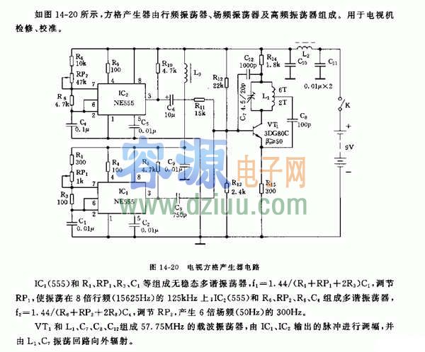 基于555電視方格信息產生器電路《版權聲明:本文由容源電子網(www_dziuu_com)整理提供,部分內容來源于網絡,如有侵犯到你的權利請與我們聯系更正!