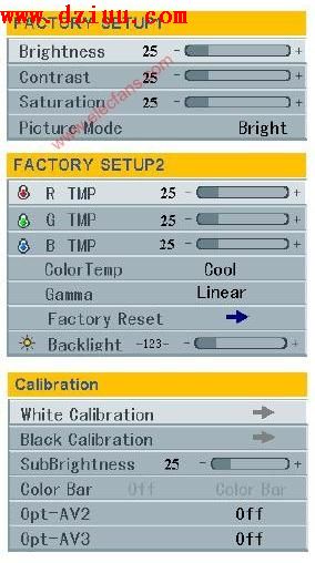 SATURATION:飽和度 PICTURE MODE:圖像模式 BRIGHT ;明亮 BACKLIGHT;背光調(diào)節(jié) <<版權(quán)聲明:本文由容源電子網(wǎng)(www.mnu8.com)整理提供,部分內(nèi)容來(lái)源于網(wǎng)絡(luò),如有侵犯到你的權(quán)利請(qǐng)與我們聯(lián)系更正。》