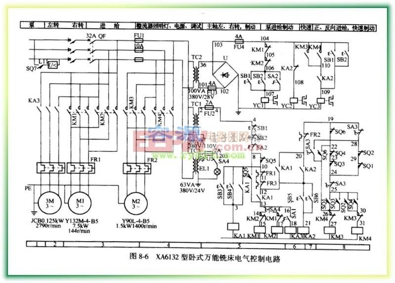 XA6132型臥式萬能銑床電路圖 <<版權(quán)聲明:本文由容源電子網(wǎng)(www.mnu8.com)整理提供,部分內(nèi)容來源于網(wǎng)絡(luò),如有侵犯到你的權(quán)利請與我們聯(lián)系更正。》
