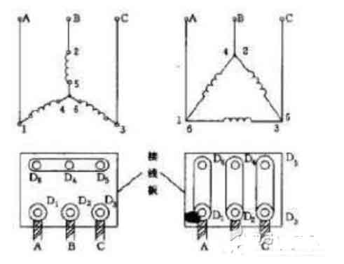 電機上共計有兩排六個接線柱,先來說下220V的接法: W2與U1連接,U2與V1連接,V2與W1連接,然后三根進線分別與U1,V1,W1連接即可。需要說明的是,這種接法,千萬不能接380V的電,一旦接上,幾分種內電機就會燒壞。 再來說下380V接法: W2,U2,V2三根線柱兩兩連接,3根接入的火線分別與U1,V1,W1連接即可.