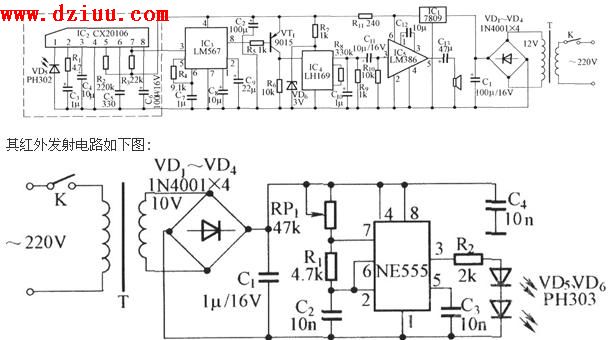 紅外探測(cè)語(yǔ)言警示器_電路圖1