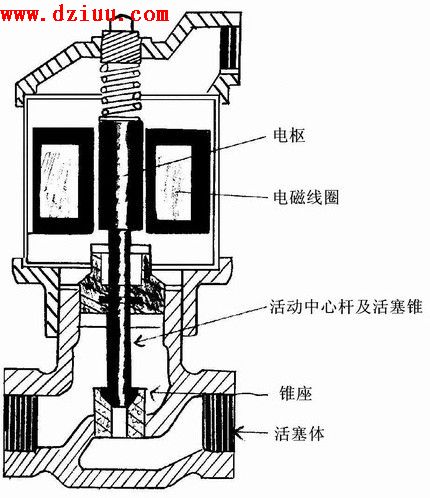 圖中畫(huà)的是電磁閥的截面圖,即所謂電磁閥。電磁線圈中