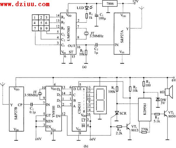 為DTMF編碼無(wú)線電發(fā)射電路,圖(b)