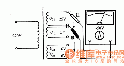 3)測試變壓器的二次繞阻空載電壓將變壓器一次繞組接人220V電源,將萬用表置于交流電壓擋,根據(jù)變壓器二次繞組的標稱值,選好萬用表的量程,依次測出二次繞組的空載電壓,允許誤差