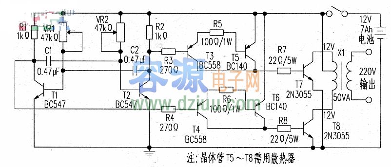 簡易小型逆變器電路圖,50W