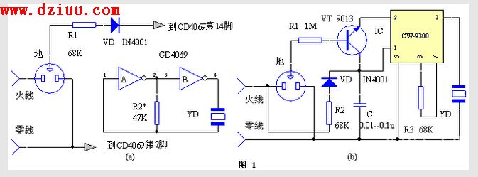 圖(b)采用一片CW9300音樂IC制作的漏電報警器,