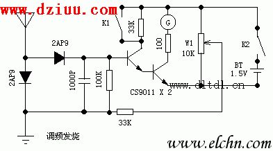 并沒有一個標準,但可以使你調試輕而易舉!你可以直接將探頭點測調制器的輸出端,更可以將探頭點測激勵級的輸出。 其中K1為增益選擇,K2為電源開關,W1靈敏度調節,本電路做好后放于鐵盒內,圖示的接地端接鐵盒。 <<版權聲明:本文由容源電子網(www_dziuu_com)整理提供,部分內容來源于網絡,如有侵犯到你的權利請與我們聯系更正。》