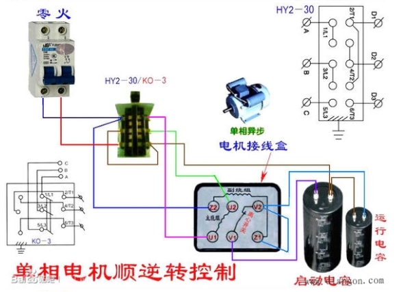 在沒有三相電的情況下,就只能使用單相電機來工作,大家都知道單相電機的主軸轉向一般都是正轉,本文介紹單相電機正反轉接線圖及實物