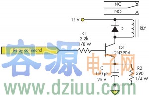 這是一個(gè)RC電路,有個(gè)串聯(lián)線(xiàn)圈,可以控制滿(mǎn)流,使得繼電器可靠地工作,并降低電流,節(jié)約功耗。 這個(gè)電路的亮點(diǎn)是,只要加兩個(gè)最普通的元件,一個(gè)電阻和電容,就可以使繼電器線(xiàn)圈