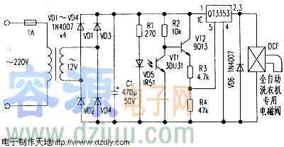 沐浴熱水器自控水龍頭電路如附圖所示,IC QT3353是一種大功率高速開關(guān)集成電路,它具有良好的開關(guān)特性,其內(nèi)部設(shè)有過壓、過熱等多種保護電路。