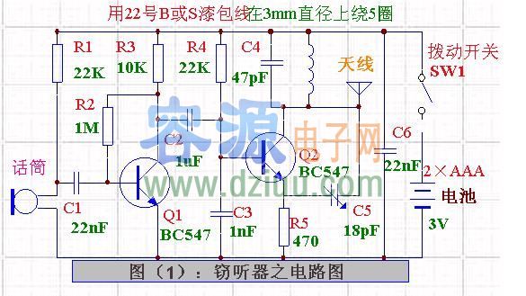 簡易無線電竊聽器電路圖 <<提示:容源電子網為廣大電子愛好者提供電路圖專題網站“容源電路圖網”,歡迎訪問。匯聚大量電路圖與你共同分享。》