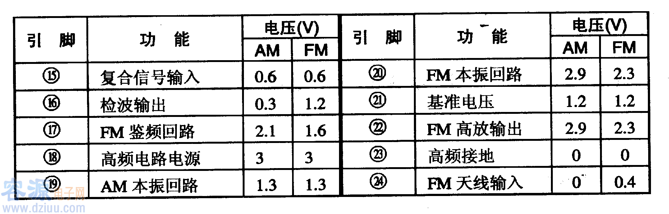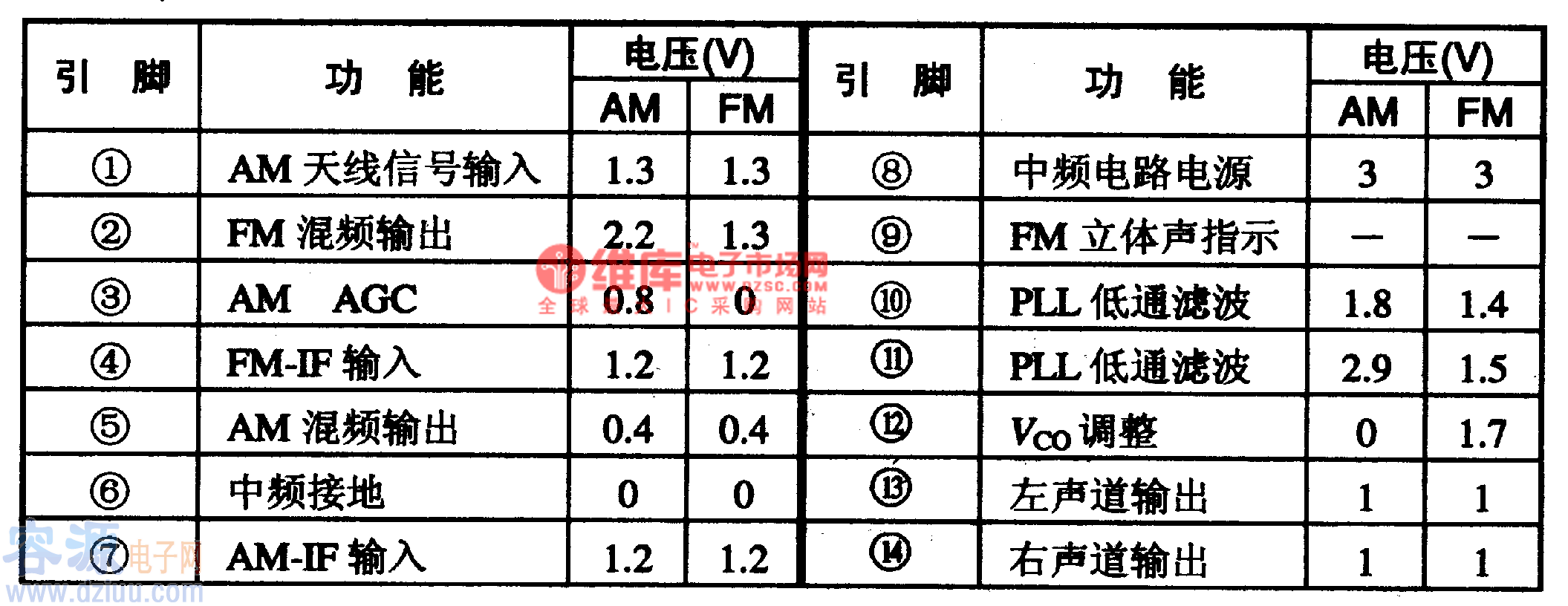 LAl816M集成塊1.5V供電的典型應(yīng)用電路如圖1-2所示。由于該集成電路集成度高、功能多、故其外圍不需要接中頻變壓器等大元器件。只要再外接一雙聲道功放電路就能組成一部完整的3V電源電壓的微小型AM/FM立體聲收音機。
