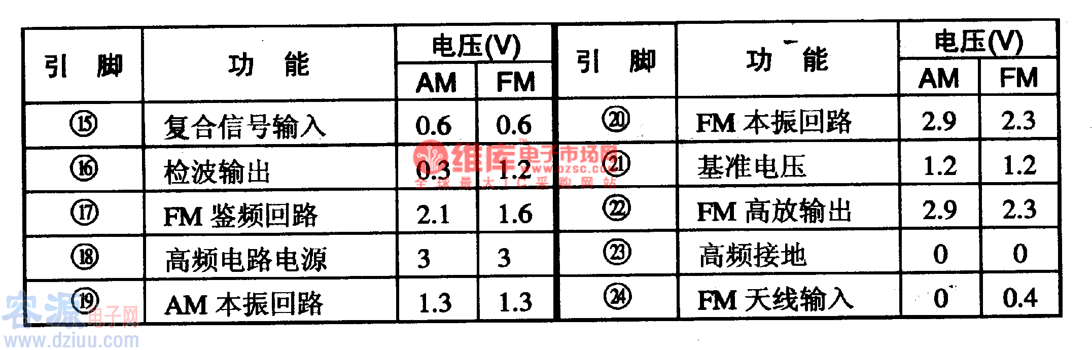 LAl816集成電路有兩種封裝形式,其中:LAl816采用24腳雙列直插封裝;LAl816M采用24腳雙列扁平封裝。這兩種IC的電參數(shù),內(nèi)電路方框圖,引腳排列及功能一致,只是外形封裝不同。LAl816/M集成電路的引腳功能及數(shù)據(jù)見表1-1所列。