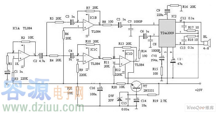 tda2009a單聲道電路圖工作原理: