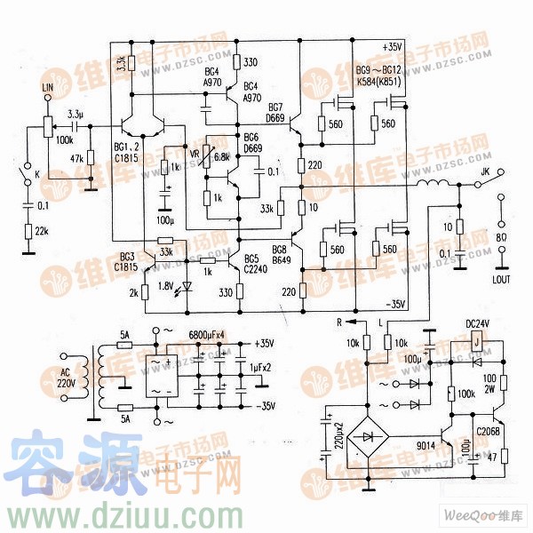 使用大功率場效應管的實用功率放大器電路圖