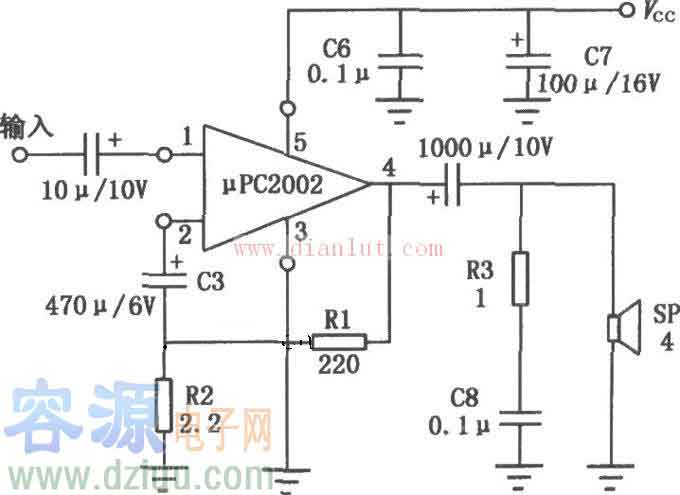 此電路中,電阻與負(fù)載的揚(yáng)聲器相連,從而用來作為輸出動(dòng)作消極。