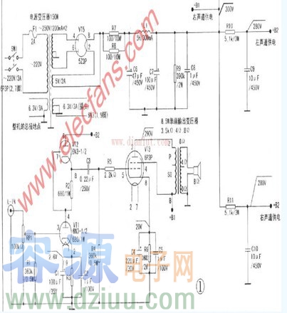 6P3P單端A類電子管功放電路圖