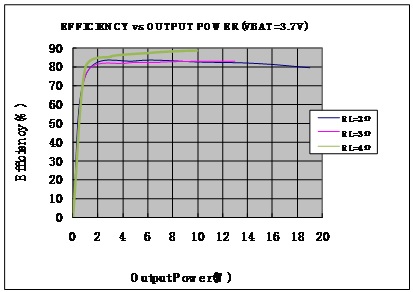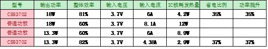 CS83702正因為效率高才保證輸出足功率,3.7V供電時,功率輸出如下表: