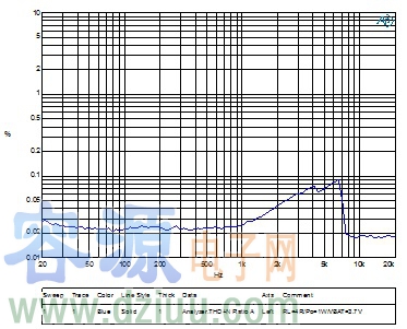 CS83702效率高,功率大的同時,為了保證音質,在中小音量失真度THD也表現出色:THD+N≤0.026(f=1kHz/Po=1W/RL=4Ω/VBAT=3.7V)。