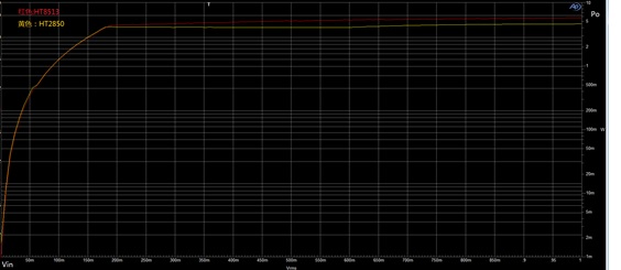 HT8513 對比2850輸出功率曲線:(VBAT=3.6V,RL=2.5Ω,防破音關閉ACFOFF)