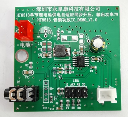 HT8513 單節鋰電供電內置動態同步升壓5W單聲道音頻功放IC