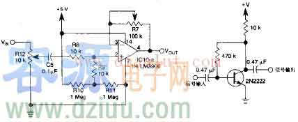 如圖所示,電路選用了集成雙運算放大器LM358作為電壓放大器,第一級為前級反相放大器,它將微弱的信號進行電壓放大,第二級構成緩沖隔離放大器,其特點輸入阻抗高、輸出阻抗低,從而提高了前級運放帶負載能力,
