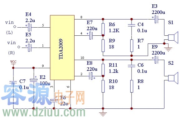 TDA2009單電源功放應用電路