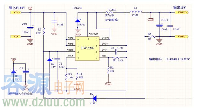 | PW2902 | 8V~90V | 5V~30V | 2A | 140KHZ | SOP8-EP |