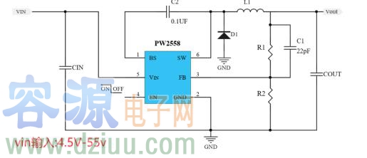 | PW2558 | 4.5V-55V | 1.25V-36V | 0.8A | 1.2 MHz | SOT23-6 |