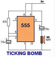 一個傳感器打開Q1來激活低頻555振蕩器,這會脈沖電燈I1。傳感器對于改變光線或者溫度是很敏感的。 :