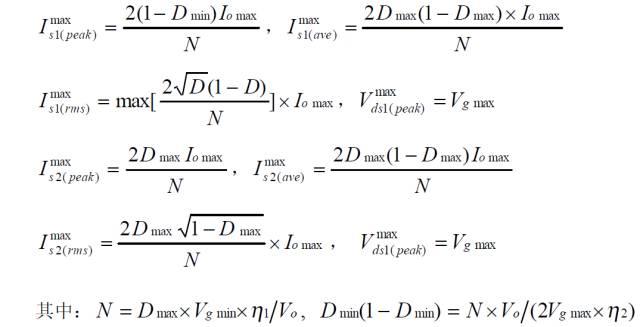 對(duì)稱驅(qū)動(dòng)推挽Boost 變換器的功率器件設(shè)計(jì)公式![]()