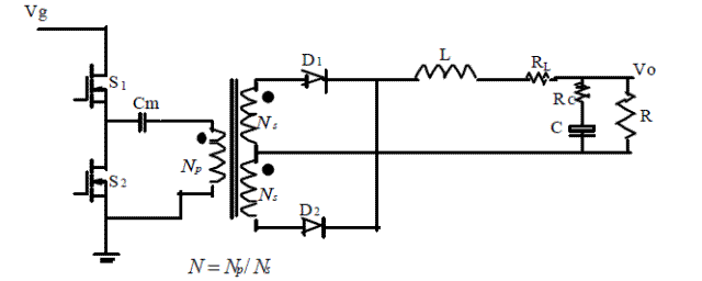 (1):不對(duì)稱驅(qū)動(dòng)半橋變換器的電路圖: