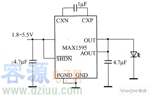 圖 MAX1595電荷泵驅(qū)動(dòng)白光LED電路