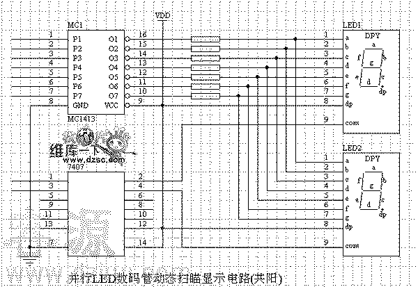 并行LED數碼管動態顯示電路圖(共陽)