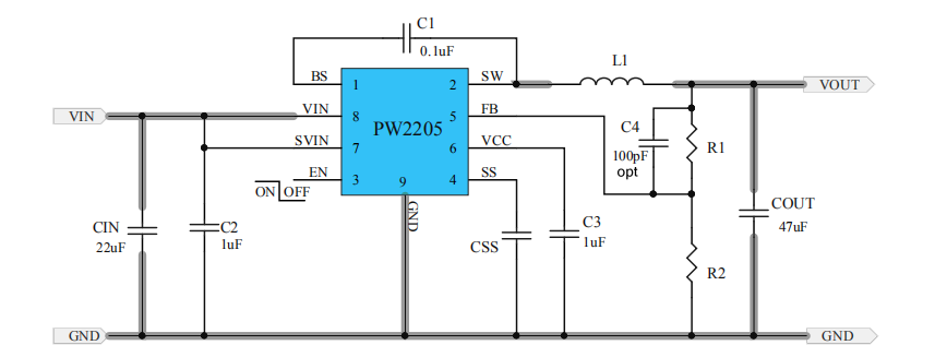 PW2205開發(fā)了一種高效率的同步降壓DC-DC轉(zhuǎn)換器5A輸出電流。PW2205在4.5V到30V的寬輸入電壓范圍內(nèi)工作集成主開關(guān)和同步開關(guān),具有非常低的RDS(ON)以最小化傳導(dǎo)