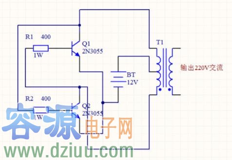 兩個(gè)三極管構(gòu)成簡(jiǎn)易逆變器電路圖(傻瓜逆變器電路圖)