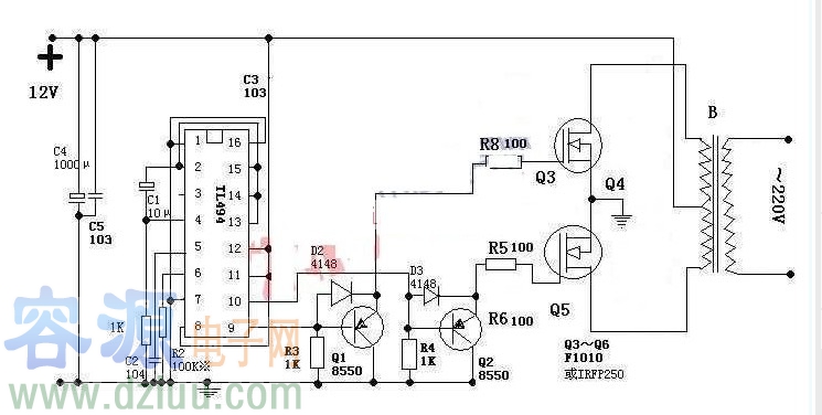 簡(jiǎn)單自制tl494逆變器電路圖50hz輸出,大功率輸出,