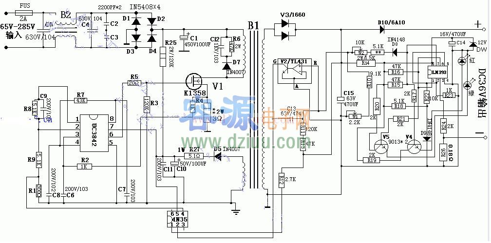 使用DC3842 36V電動車輸出充電器電路圖