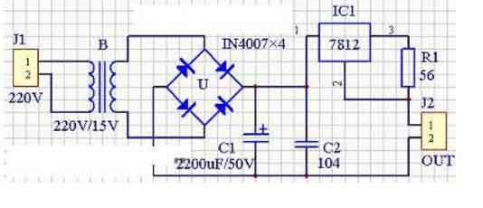 三端7812集成穩(wěn)壓電源電路