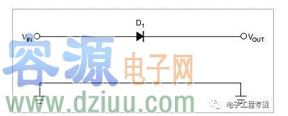 1、常情況下直流電源輸入防反接保護電路是利用二極管的單向導電性來實現防反接保護。如下圖1示: