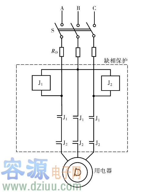 三角形接法電動機斷相保護電路