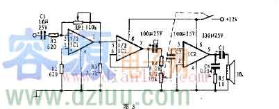 TDA2612應用電路圖(單聲道OTL功率放大器)如圖所示,為10W單聲道OTL功率放大器電路。10W單聲道OTL功率放大器電路由高保真音頻功放集成電路TDA2612組成。IC的16(腳為信號輸入端)12腳為功放輸出端。C1為輸入耦合電容,C5為輸出耦合電容,C4、R4構成消振