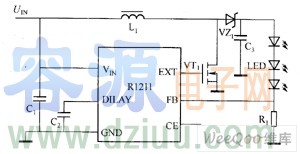 理光公司的R1211系列是采用CMOS工藝生產的低功耗、具有電流控制功能的開關式升壓變換器。其外圍電路簡單,只需一個電感,一個二極管,一個場效應管和幾個電阻、電容。其輸人電壓范圍是2.5~5.5V,適用于單節鋰離